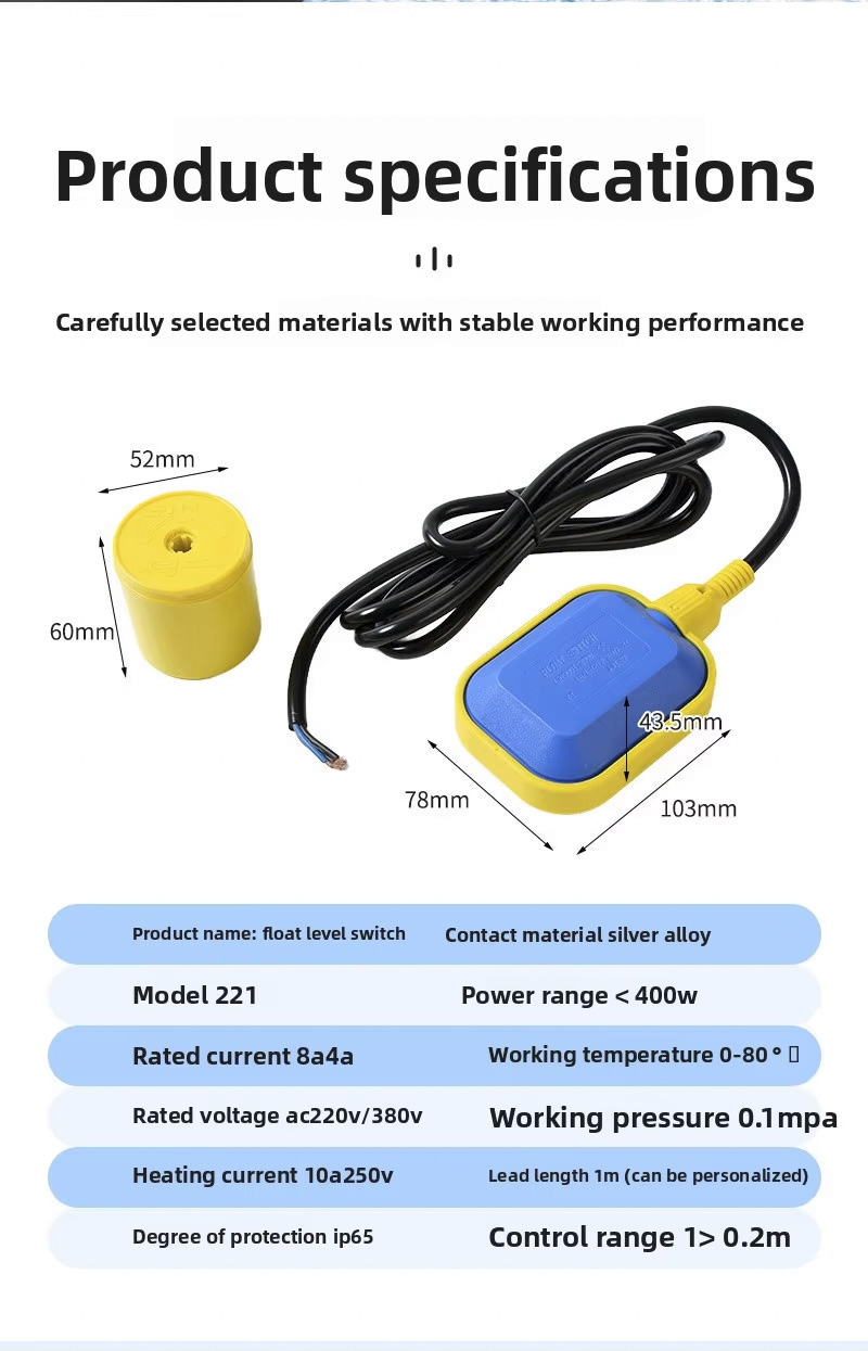 M15-3 220V プラスチック水タンクフロースイッチフロートレベル制御スイッチサンプウォーターポンプ水位センサー用自動フロートスイッチ。