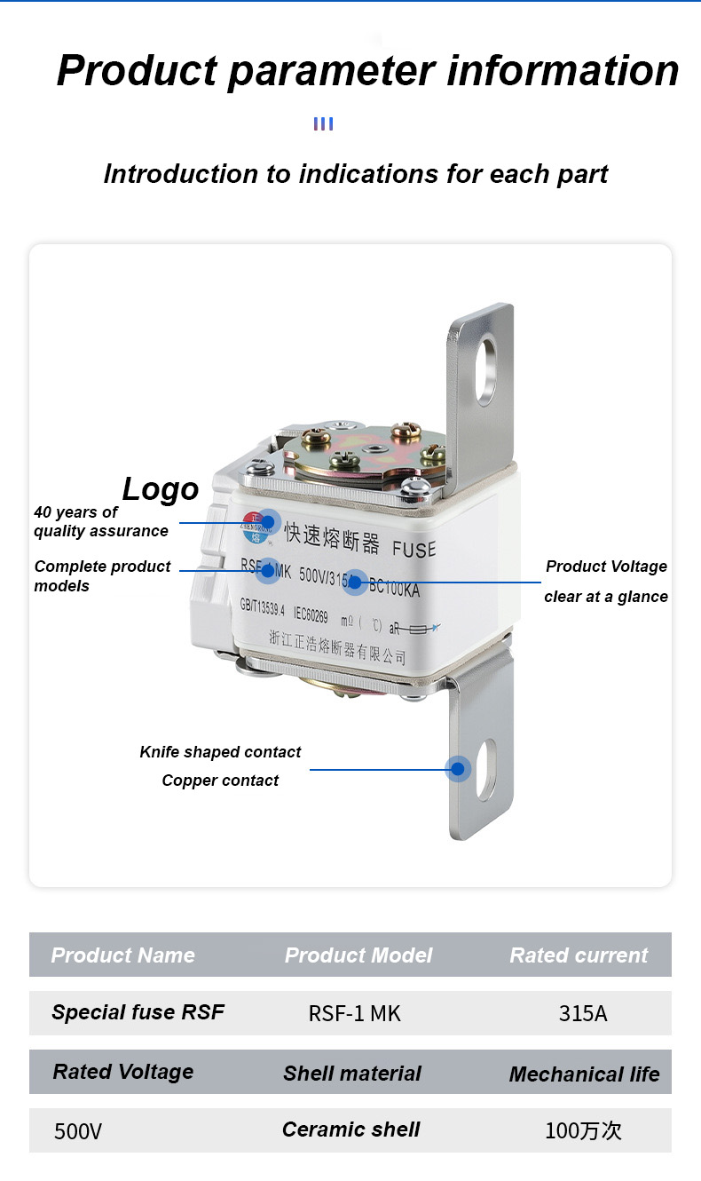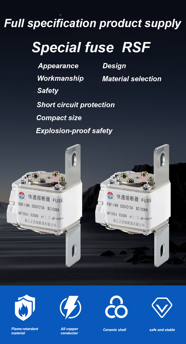 RSF-1MK 500V-315A BC100KA ヒューズは、電圧 500V、最大電流 315A の電力システムに適した効率的で信頼性の高い工業グレードのサーキット ブレーカーです。この製品はBC100KAの高い遮断容量を備えており、回路の安全を効果的に保護し、突然の電流サージによる機器の損傷を防ぎます。コンパクトな設計は設置が簡単で、配電盤、産業オートメーション、建物の電源と配電などのシナリオで広く使用されています。 RSF-1MK 500V-315A BC100KA ヒューズは、長期安定した動作を保証し、さまざまな高負荷環境要件を満たす高品質の材料で作られています。
